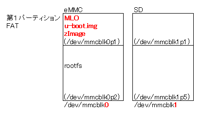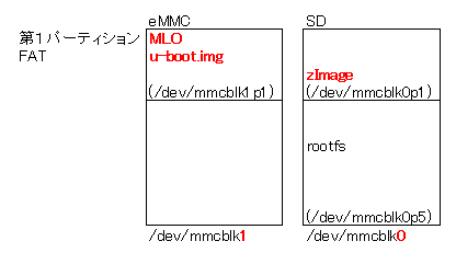 が起動し、次いでSDカード第一パーティションのzImageが起動する。 その他 †SDカード有り/無しいずれの場合でもeMMCの第一パーティションのMLOから起動するが、eMMCを壊してしまった場合はSW2を押しながら電源を入れるとSDの第一パーティションのMLOから起動する。 関連 † |