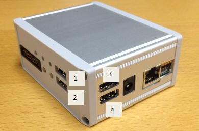 BBBのAngstromを起動し、hub-ctrl-armhf-static を (USBメモリを経由するなどして) Angstrom に持ってきたうえで # mkdir -p /usr/local/bin # cp hub-ctrl-armhf-static /usr/local/bin/hub-ctrl 使い方 †BeagleBone Black にて lsusb でHubのBus番号とDevice番号を調べます。 # lsusb Bus 001 Device 002: ID 0409:005a NEC Corp. HighSpeed Hub <--- これ Bus 001 Device 001: ID 1d6b:0002 Linux Foundation 2.0 root hub Bus=1, Device=2 が分かりました。 # hub-ctrl -b Bus番号 -d Device番号 -P ポート番号 -p 0 または 1 になります。BeagleBoneBlackBoxのUSBポート番号は写真の通り1から4です。 サンプル †