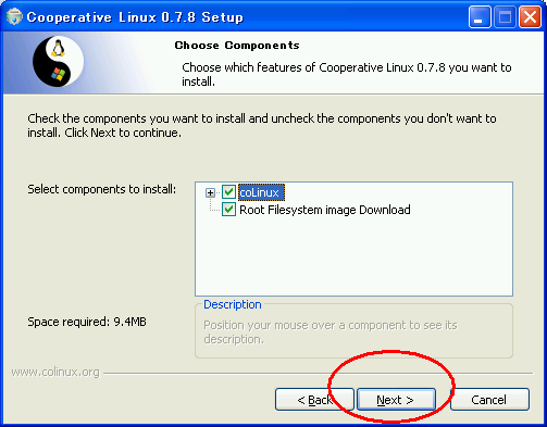 ダウンロード&インストール †CoLinuxのダウンロードとインストールは簡単なので一気にやってしまいます。
