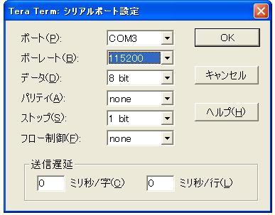 続いてTeraTermメニューの設定からシリアルポートを選択しボーレートを115200にします。