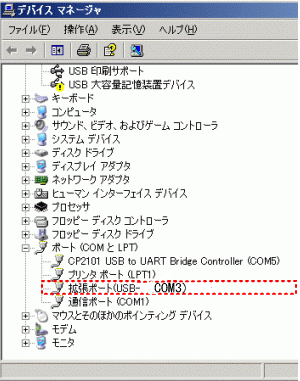 ポート(COMとLTP)を見て通信ポートを確認します。