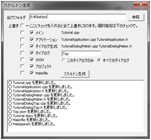 プロジェクトを保存する。 †[ファイル(F)]メニューを開いて[プロジェクトの保存(全てのリソース)]をクリックしてください。 ダイアログが表示されます。[ファイル名]に"Top"と入力して[保存]ボタンをクリックしてください。 #ref(): File not found: "dialog_save.png" at page "PlusG SMART Solution チュートリアル - アプリケーションの製作" スケルトンを出力する。 †[ファイル(F)]メニューを開いて[スケルトンの作成]をクリックしてください。 ダイアログが表示されます。以下の操作を行ってください。